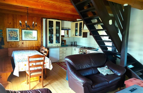 Spanning 120 square meters, our cozy chalet is thoughtfully designed over two floors. The lower floor features an inviting living area with an open fireplace, a fully equipped kitchen, a bathroom, and a luxurious Finnish sauna. Upstairs, you'll find four comfortable bedrooms and an additional toilet, ensuring ample space and privacy for all guests.