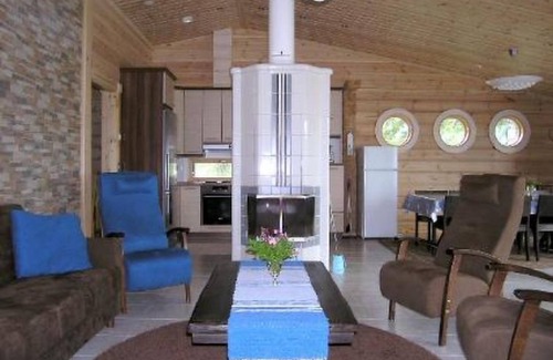 Log villa 2012, kitchen-living room with sofa bed, bedroom with double bed, bedroom with bed and bunk bed, dressing room with sofa bed, shower / wc, sauna, terrace 50 m². Close to the beach is a separate sauna. Cottage has mechanical ventilation and central vacuum cleaner, 2 x fridge.