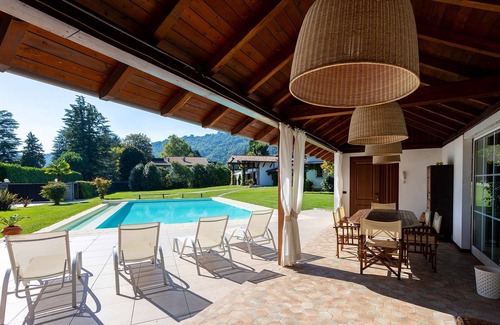 Villa Brin is a luxury, waterfront villa located between Arona and Stresa on Lake Maggiore, the villa features tennis court, private sandy beach and dock, as well as a private in house 9 hole golf course. Lot of extra amenities included on price are present at the villa such as bikes, table tennis, soccer, basket dinghy, sailing, canoeing, bicycles, 40 HP motor boat (non license needed) included on price, (fuel is apart).