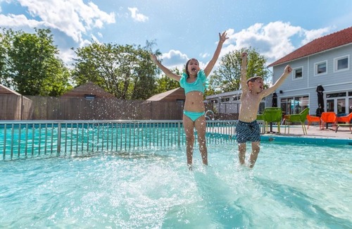 Lodge tent 5 is a fully equipped glamping tent. It is on the ground floor, has room for 5 people and can be entered via a few steps. The living area has an open kitchen and is equipped with an induction hob, microwave and fridge, among other things. There is also a cosy dining area with television. The tent has 2 sleeping areas with 5 beds: 1 double bed and 1 bunk bed with 3 single beds. In the bathroom you will find a toilet, washbasin and shower cabin. The covered terrace has garden furniture. At Lodge tent 5 you can park 1 car and you can use the wifi.