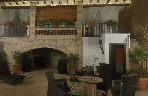 The Neus i Sisco country house is housed in an old house from the 17th century. (1762) It has a patio with an outdoor fountain, barbecue area, outdoor kitchen and bathroom. It is only 30 km from the Ebro River, where you can practice fishing and sailing with boats.
