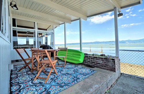 This clean, comfortable, beachfront property offers expansive views of Annas Bay, the Olympic Mountains, and the Great Hood Canal!