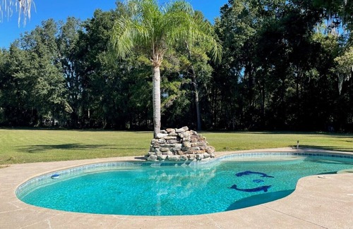 Brand new construction in the heart of horse country. Sitting on 5 acres of gated private land. 5 bedroom, 4 bathroom home with outdoor pool. Everything you need to make your stay wonderful. Beautifully furnished with all the amenities and close to everything! Horse peeps- this is 5 mins to Fl Horse Park, 20 min to WEC and 30 min to HITS. Conveniently located to downtown Ocala, Silver Springs, Cactus Jack’s Trail Riding and the Canyons Ziplines. Short drive to Gainesville.