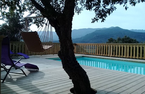 Breathtaking panoramic view without overlooked on the Aiguilles de Bavella and the vineyards of the valley from the apartment and the terraces.