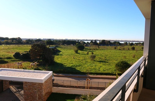Very quiet residential area with no construction around, facing the ponds. You can observe from the terrace the horses and pink flamingos