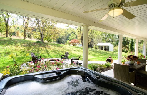 Idyllic, luxurious, country home, located minutes from the newly minted New River Gorge National River & Park. Very close to popular trails such as Long Point and Kaymoor Trails as well as Cunard River Access. After your action packed-day of white water rafting, hiking, zip-lining, mountain biking, etc, sink into the comfortable oversized couch or soak in the hot tub to relax your mind and body. Then cook yourself a meal in our fully equipped kitchen or do some grilling on the outdoor BBQ. As the stars come out start a roaring fire in the fire pit for making smores while telling ghost stories. Then, finally, retire in our super comfortable beds in order to get re-energized for another adventurous day!