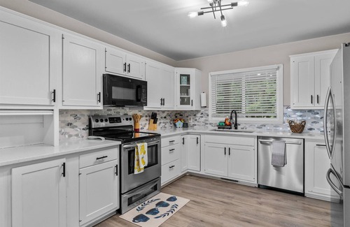 This spacious 3-story, 2,574 sq. ft. home offers breathtaking lakefront views and modern comforts, accommodating up to 13 guests. Whether it’s a family reunion, group trip, or a quiet vacation by the water, this retreat has everything you need to relax, connect, and create lasting memories.