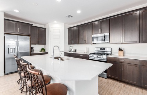 It looks like you have found a lovely vacation rental in North Phoenix Arizona! This brand new home with 4 bedrooms and 3 bathrooms is perfect for families looking for a relaxing getaway. The beautiful heated sparkling pool, outdoor BBQ grill, private putting green, and outdoor games are great for enjoying the sunny Arizona weather. Plus, the gorgeous mountain views, covered patio, and loungers provide a comfortable and peaceful atmosphere for your entire family to enjoy.