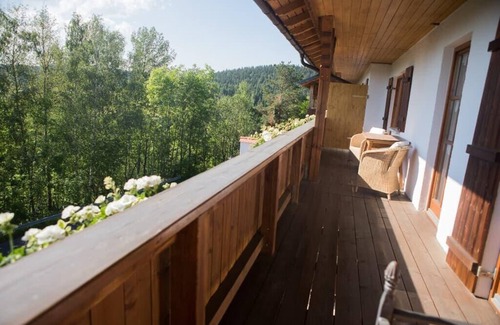 Mit viel Liebe eingerichtete, warme Ferienwohnung (140qm) im Herzen des Bayerischen Waldes. Die stilvolle Unterkunft verspricht mit Ihrer feinfühlig ausgewählten Einrichtung einen unvergesslichen Aufenthalt im Lamer Winkel. Die beiden kuschligen Doppelbetten lassen Sie ausgeschlafen in den neuen Tag starten. Das charmante Wohnzimmer mit Sofa und TV lädt zum Verweilen ein. Die vollausgestattete Küche mit Toaster, Kaffeemaschine, Geschirrspüler, Geschirr, Backofen, Kühlschrank und Mikrowelle lässt keine Wünsche offen. Das schöne Bad mit offener Dusche, Badewanne, WC und Fön rundet das Gesamtbild ab. Die Wohnung verfügt über einen großzügigen Balkon, auf dem man eine atemberaubende Aussicht über den Lamer Winkel hat. Bettwäsche und Handtücher sind vorhanden, WLAN und Parkplatz sind kostenlos. Auf Wunsch erhalten Sie einen Brötchenservice mit frischen Brötchen und Croissants oder ein Frühstück auf dem Zimmer.