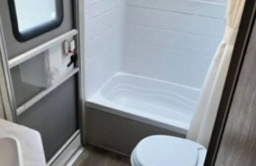 Trailer is updated--larger, 3 slideouts, upgraded, comfortable furnishings; pictures don't reflect this yet; Comfortably sleeps 2-3; Still a cozy space with the amenities of a house; Comfortable after a long day; peaceful, rural, private setting that is gated and offers free parking. Eating table can double as a work space. 1 large smart tv.