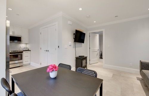 Welcome & Enjoy our 513st ft Guest House. Garden level. No upstairs or shared walls or basement. Perfect for one person or a couple. Open concept kitchen with standard size stainless steel appliances. View to living room & entrance. Washer & dryer are in the kitchen -convenience. One bedroom with ensuite bathroom and walk in closet. Queen size bed with foam topper for comfortable sleep. Living room "love seat" sofa seating for two..Ductless Air Conditioner and extra tower fan for summer. In the winter Radiant floor heating and extra heater tower. HVAC for the standard rotation of air inside to outside. Hi Speed WiFi and cable TV included. Bedroom TV has Netflix, Amazon Prime Video, Tubi TV. Living room TV has regular cable TV and Netflix & Amazon PrimeVideo, YouTube, Music stations Free public direct street front parking when available. We will greet you upon arrival to provide keys and orientation at check-in time during check-in window. Please advise your estimated time of arrival. Self check out.