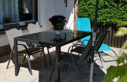 In addition, the apartment has a terrace that you can use alone and enjoy the time in our garden. The apartment is completely on the ground floor and can be reached without steps. We have a parking space either directly in front of the house or in a small parking bay about 20m away from the apartment. In the garden is a swing for children and a trampoline, which may be used with pleasure.