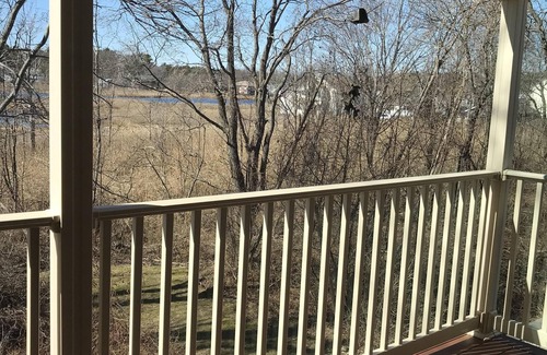The first floor offers a spacious open floor plan with a full eat-in kitchen, comfortable living room, and half bath. The kitchen opens out to a porch facing the ocean for quiet morning coffee and through the living room is another porch with gorgeous sunset views of the marsh.