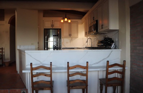 Check the surf on your enormous oceanfront patio at this recently remodeled upgraded Baja Villa. Relax and unwind, enjoying the amenities of a resort and charm of a pueblo. Sleep in total comfort: 2 king, 2 twin high thread count sheets, deluxe mattress. Wifi. Landline with free international calls. Watch your children scamper down to the beach, exploring the tidepools-safe and sound. Play tennis, take a surf session, jacuzzi or a rambling stroll along the beachfront walkway. The starry nights around the fire pit will have you singing. Unwind and enjoy.