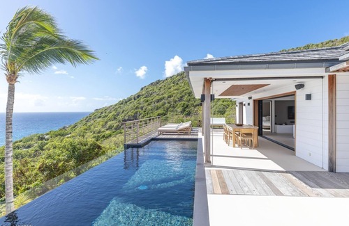Newly built, the villa has a modern kitchen and a comfortable bright living room. The terrace offers a dining area as well as an outdoor lounge. From its large heated pool, you can enjoy the incredible view of one of the most beautiful places in St Barths.