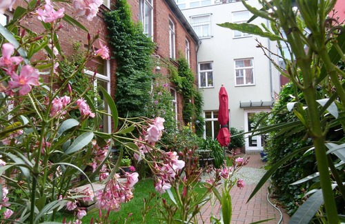 Bright, sunny apartment on the 1st Floor for 2 people in the middle of a green courtyard garden that can be used. It is a non-smoking apartment, but there is the possibility to smoke in the garden. The apartment was refurbished in 2017. All pictures hanging in the apartment are originals of regional artists.