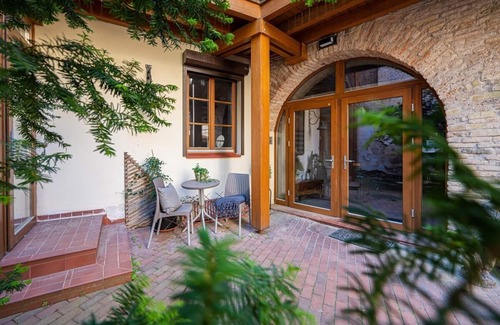 The Old Town Gate Residence is located in the heart of Vilnius (next to the Gate of Dawn monument), within walking distance of many tourist attractions. The Residence offers a 91 square meter fully furnished private apartment, located on the ground and first floors. In which there is plenty of space for families or small to medium groups of travelers who appreciate luxury, comfort and tranquility. Guests may use the kitchen with essential cooking utensils, dining area and the living room. At the Residence there are three private bedrooms (two downstairs and one upstairs) and two full bathrooms (one downstairs bathroom with a bathtub and one upstairs bathroom with a shower). Also for the comfortability of the guests in the downstairs hallway was equipped a lounge place with a double sofa bed. Bed linens, towels and essentials are provided. Guests also have access to outdoor furniture in the shared courtyard. On other side the Residence has a backyard with garden view. The Residence has plenty of space for families or groups of travelers who appreciate luxury, comfort and tranquility. Up to 8 adult guests can be comfortably accommodated. The Residence has an option of secured public parking at a location nearby for 15 € per day. Street parking is also available for 30 € per week.
