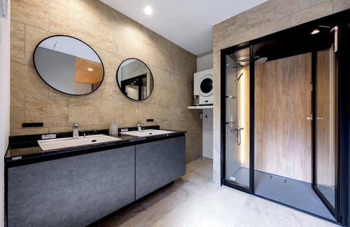 Located 10 minutes by car from Huis Ten Bosch and 6 minutes on foot from Sasebo Station next to Huis Ten Bosch Station along the old Hirado Kaido Oyado Road is a Japanese modern luxurious newly built house with an openair bath overlooking the Sasebo Strait and is limited to one group per day