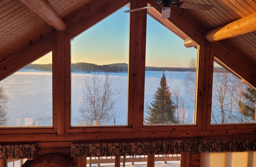 Vermilion Miles Away Lodge is a custom log cabin set against a spectacular ledge rock outcropping with 6 acres of wilderness, 380 feet of shoreline, and 40,000 acres of Lake Vermilion to explore! Breathtaking panoramic island studded views await!