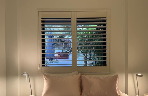 Paradise Hideaway’s main bedroom hosts a Queen bed, built in robe and windows overlooking the leafy private rear courtyard with a delightful water feature. All windows have plantation shutters for your comfort. The spacious gourmet kitchen has a double NEF oven, a large fridge with icemaker and filtered cold water on tap, a 4 burner induction cooktop, toaster, kettle fine china dinnerware and all the usual utensils. The lounge has two extremely comfortable electric leather reclining lounges and a 65” large screen smart TV. There is a very private semi-enclosed front patio with seating and a private rear garden. Whether you sleep in late or rise early, it’s always a good time to take a quick stroll to the beautiful South Beach. Shower in your private courtyard after the beach or before wandering onto the strip to enjoy a coffee or breakfast at a nearby cafe. Lunch and dinner choices abound, all within easy walking distance of Paradise Hideaway. Catch the 532 bus across the road and head in to Fremantle (1.5 ks) where you can spend the day visiting the local shops and attractions or catch the train into Perth. Paradise Hideaway is not suitable for children under 12 due to the extra beds being on a mezzanine floor.