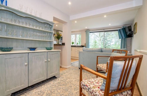 Walking through the utility room you arrive in to the spacious living room with stunning views across the hugh garden with babbling brook. The living room is equipped with a large Smart TV (You'll need to use your own log in details for the TV applications). The living flows into the well-equipped kitchen, that has everything you need for home dining. Use of appliances include an electric oven, electric hob and fridge-freezer. Smaller appliances include a microwave, kettle and toaster. There is also a large breakfast bar to sit and enjoy your meals.