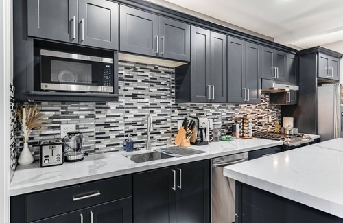 • Kitchen is fully stocked with kitchen appliances, cookware, silverware, servingware, spices, keurig coffee & tea