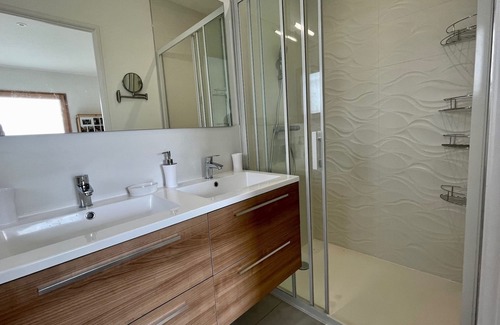 Each bedroom has its own shower room and WC, fitted kitchen with traditional ovens and microwaves, 4-burner gas hob, dishwasher, washing machine and dryer, electric kettle, toaster, steamer as well as all the little useful accessories for cooking.