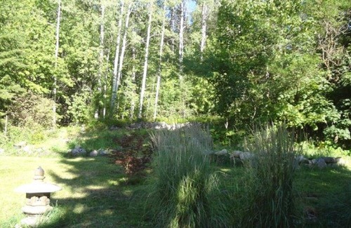 This is a beautiful southwest facing one acre retreat with a creek running through the property. It is a ten minute drive from Nelson, BC. There is lots of privacy in this natural setting. A regional park on Kootenay river is less than a five minute drive away. The two bedroom/one bathroom house is of post and beam construction with many large windows that create spaciousness and provide lots of light. One of the bedrooms has a gas fireplace and there is a wood fireplace in the living room. Electric heat is also supplied. Ski weeks are available during ski season. There are two popular ski hills within a 45 minute drive to either hill. A great spot to relax after a day of skiing or hiking.