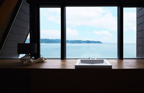A modern hexagonal private residence with outstanding architectural beauty located along the quiet coast of warm Uchiboso about an hour from the city center