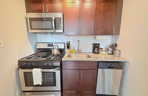 The kitchen has the basics if you feel like cooking. Wi-Fi is also included. Self check-in makes arrival easy and flexible. The apartment is well located, making it a solid choice for short stays—whether you're in town for work or taking some time to explore the area.