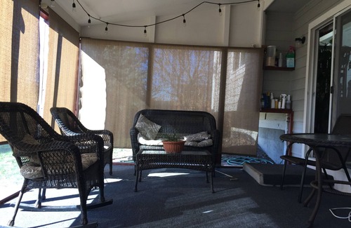 Our house is your house! This one bedroom home is well appointed with sleeping arrangements for two people, ample furnishings, and a screened-in room in the included backyard for relaxing outdoor living. Bonus: Look out over the back fence for views of a tranquil green space and mountains to the west.