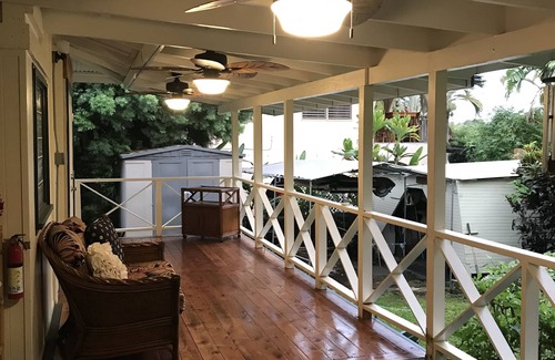 A true Hawaiian-style vacation rental makes you feel welcome in this fully equipped family home. Just steps to the magical blue waters of Kealakekua Bay, you'll be able to swim, snorkel, and paddle practically in your front yard. With a peekaboo ocean view you can see the sparking diamonds on the water just across the street. Stroll across the single-lane road for amazing sunsets and some of the best snorkeling in Hawaii. See spinner dolphins year round, and humpback whales in season. BBQ in the private, fenced garden, and pick your own fruit for breakfast without leaving the yard. Enjoy pleasant quiet evenings on the lanai and marvel at the clear starswept sky. Air conditioners in most rooms, along with cool breezes wafting in off the bay, keep you as comfortable as you want to be. Newer beds, pillows and linens keep you feeling fresh and cozy, and our 10-point cleaning protocol ensures a super clean and tidy home. Solar power and solar hot water heating, along with conventional sources, helps offset one's environmental footprint. Composting, chemical and poison free cleaning products and pest management, scent sensitive practices, and many other modern adaptations to this historic property make it the perfect vacation home for our times.