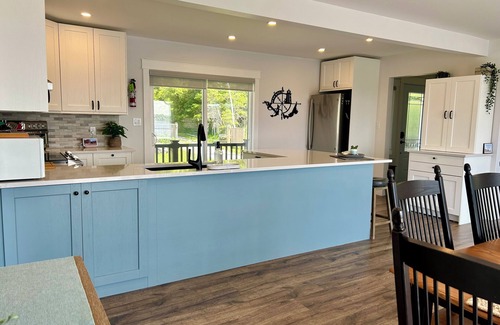 'York Point Beach House’ is a beautiful 2 bedroom cottage on the water in a quiet setting just 10 minutes west of Charlottetown in Cornwall. Just minutes from restaurants and other service amenities, the cottage sleeps four with a queen bed in the master bedroom and a double bed in the second bedroom. The dining room comfortably seats 6. The cottage is fully furnished & equipped with propane BBQ, washer & dryer, all kitchen appliances (including dishwasher & air fryer), and WiFi. A 10x16 sunroom and two large panoramic composite decks with steps to the water and a large yard provide ample space for enjoying this peaceful scenic destination. Excellent location for beach-combing or to just relax and watch the wildlife - blue herons, eagles, seals, etc. Popular north shore and south shores beaches are 20-30 minutes away. There are 2 external security cameras on site for security purposes.