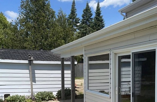 The cottage itself has 2 bedrooms that can accommodate up to 6 people as well as two non-pull out couches in the two living rooms that could work in a pinch. One bedroom upstairs has 1 queen sized bed with a perfect lake view and one bedroom downstairs has 2 queen beds. There are 2 separate living room areas-one on each floor with smart TVs and their own Amazon Firesticks loaded with all the popular streaming services as well as some kid’s toys and board games. The modern, bright interior has awesome lake views for you to enjoy. A full kitchen with glass top stove and oven, fridge with freezer, dishwasher and washer/dryer are all available for use. The lake level sunroom boasting windows on three sides makes for the perfect place to feel like you’re outside while staying comfortable inside. We’re excited to hear from you and hope you’ll enjoy your stay.