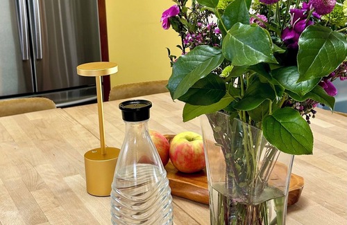 Our chef's kitchen is built for family and friends to gather around our huge kitchen island and counter-space and comes with a Wolf gas range/double griddle/2 ovens, a Breville Oracle barista coffee maker, kettle, new microwave, a Breville air fryer/toaster oven, a Thermomix blender, Cafe 2-drawer dishwasher, and several chef’s appliances. We make your stay easy and convenient by supplying basic pantry items, condiments, cleaning, and other amenities. Our in-house H3 washer/dryer adds convenience, as does ample free & safe street parking. EV charging is also possible during your stay with our driveway connection available.