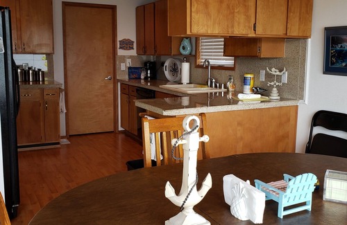 You are close enough to stores and dining that you can choose to go out for food, or bring food back and cook in the well appointed kitchen. A gas BBQ is available as well, under the covered entry way, and provides for cooking out rain or shine. This home will easily accommodate a group and is a comfortable space with a lot to offer. We are firm on the request for no parties however. We ask that you respect our home. Washer and dryer, air conditioning, granite counter tops in the bathrooms and kitchen and several items that will make your stay comfortable and relaxing! There are 3 bedrooms on the main floor with queen sized beds, a powder room and a full bath. The upstairs has 2 bedrooms. The upstairs master has a King sized bed with an en suite bathroom, soaking tub, double vanity and double headed shower. The Master is also equipped with a flat screen TV and a DVD player. Its 3 sets of windows offer views as well as the opportunity to leave them open and fall asleep to the sound of water lapping on the shores of the sound. The second room upstairs is equipped with 2 sets of bunk beds, and there is also a loft area between the rooms with a futon style couch, TV and an X-Box 360. The main floor with the open concept provides for conversation and interaction while in the living room, dining room or kitchen. The living room is equipped with a TV, DVD player and stereo system for your enjoyment. For the sports enthusiast, the owners have also provided the digital sports package with the cable plan, so you won't miss the game! In the entertainment center, you will find rows of DVD movies for all ages and genres. Personally, we enjoy layering blankets on the floor for the kids and having movie parties after the sun sets and water activities have wrapped up for the day. Our goal is for you to enjoy your time here, fall in love with the space, and return every time you need to get away! Thank you for considering our home! Please note that guests are required to complete the rental agreement attached, along with the 2 ID items listed on page 3 of the agreement within 24 hours of booking.