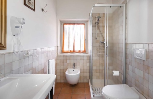 Apartment Il Fienile located on the upper floor of a building separated from the main building, directly connected to the garden where the large swimming pool is located. It has independent access.Apartment of 39 square meters and consists of a double bedroom, living room-kitchen and bathroom.The room is equipped with a double bed, the double sofa bed is available in the living room.In the living room-kitchen there are satellite TV, fridge, microwave oven, toaster and electric kettle. Free Wi-Fi. Barbecue (on request) and 2 e-bikes (fee-charging).
