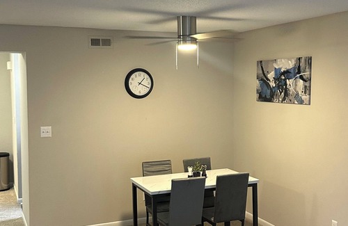 Cozy, clean 1BR ideal for working professionals or mid-term stays. Enjoy a dedicated workspace, fast Wi-Fi, and access to on-site amenities including a pool, gym, outdoor lounge, and BBQ area. Quiet, modern, and fully equipped for comfort—perfect for travel nurses, remote workers, or extended stays in Durham.