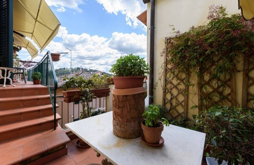 Residenza del Bravo is a large luxury apartment with several terraces, located in the village of Impruneta, on the outskirts of Florence. The apartment is located on the 1st floor of a building without a lift, and is spread over 2 levels (main floor + attic).