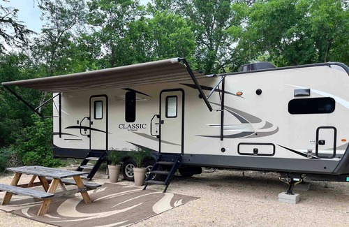 RV Camping on the Guadalupe! RV is setup and ready for fun! Come join us at our private RV campground with your family and friends! Gated Park with only 5 campsites, very private and right on the river.