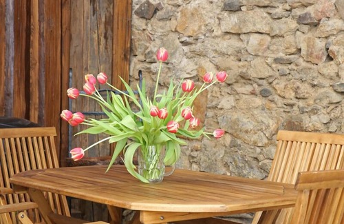 Two story apartment, one upstairs bedroom with queen bed or two single beds and one single bed. Exposed timber beams, hardwood floors, tiled open plan living room with pull out sofa bed and dining room with vaulted ceiling, fully equipped kitchen.