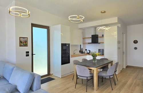 Discover a Modern and Comfortable Retreat in Kepi i Rodonit in the middle of nature. Wake up with the singing of the birds and enjoy the sea view in front of you, and the mountains in the horizon.A wonderful private swimming pool awaits for you at this villa.Welcome to this delightful 100 square meter accommodation perfectly suited for families, couples, and friend groups seeking a relaxing getaway. Located in a charming residential complex, this modern and comfortable property offers an ideal home base for your Albanian adventure. The accommodation comfortably sleeps up to 5 guests, featuring 2 bedrooms with 2 queen-size beds and an additional sofa bed. Two well-appointed bathrooms with shower facilities ensure convenience and privacy for all guests. The spacious American-style kitchen is fully equipped with modern amenities including a glass-ceramic hotplate, fridge, freezer, oven, microwave, dishwasher, coffee machine, and a comprehensive set of kitchenware and dishes.Stay connected with complimentary WiFi and enjoy entertainment on the provided TV. The property features comprehensive climate control with air conditioning and a heat pump, ensuring comfort in all seasons. A private garden with garden furniture provides a perfect outdoor relaxation space.Conveniently located, you'll find multiple restaurants and coffee shops within walking distance (1-2.4 km), including Saint Michelle, Octo, Arbeni, and Il Capitano. The beautiful Rodonit Beach is just 2.4 km away, offering easy access to stunning coastal experiences. For travelers arriving by air, Tirana International Airport is approximately 51 km from the property.Private parking for 2 vehicles is available, adding extra convenience to your stay. Please note that pets are not allowed, and smoking is prohibited inside the accommodation.