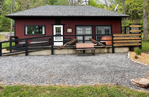 This cozy little red cabin is nestled in the woods and offers lots to do! Relax in the bubbly hot tub, sit on the comfy couch and watch satellite TV, play games by the fireplace, or just hang out on the deck and enjoy a fire. Just steps away from river access! Minutes to area attractions like Luray Caverns and Skyline Drive.