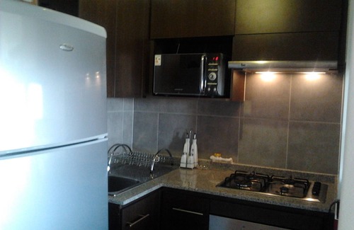 Beautiful apartment, with the best views of Santiago, 2D 2B full equipped American kitchen modern decoration, 24 hrs controlled access, swimming pool, laundry, gym. 16th floor, 10 minutes from downtown, steps from the subway, supermarkets, public transport restaurants and banks among others. Stylish decoration, master bedroom suite, terrace with panoramic view of Santiago. Up to 5 passengers