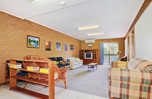 This affordable holiday house (downstairs only) is ideal for a couple or small family, with two bedrooms (one with a double bed, the other with a single and two bunks), plus a very large living area with plenty of comfy seating, a TV and DVD player.