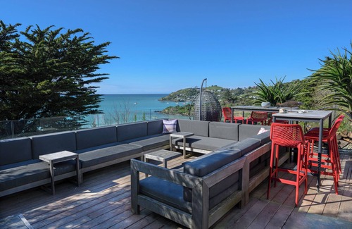 The lodge is available weekdays and weekends and offers multi entertaining lounge decks, Spa, Sauna and Pickleball court all to unwind and savour the spectacular nature of a North Otago Peninsular home.