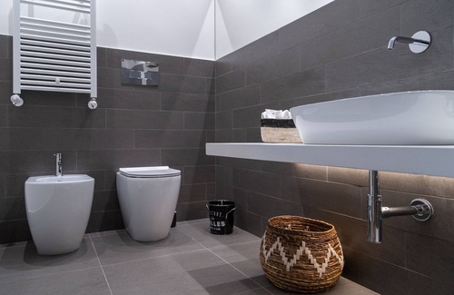 The home and individual bedrooms are accessed with an electronic badge. The 4 double beds, all suspended, have 4 memory form mattresses with relative hypoallegernic memory pillows. The furniture of the house is all brand new, led lights and ultra flat 4K TV connected by cable and wifi. Led lights and luxury finishes in all the bathrooms and in the respective bedrooms and in the living room and kitchen area. The house has a large balcony with vertical green all around and illumination of the entire perimeter by means of twilight luminous spots.