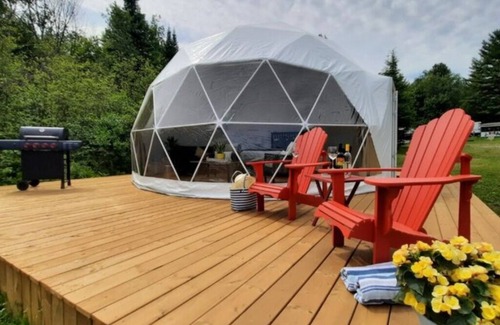 The Beach dome offers the perfect road-trip glamping experience fit with all the modern amenities found within the comforts of home! Nestled right on the beach of De Bois lake, the Beach Dome has incredible view. The wonderful open-space concept and natural light coming from giant window provide an atmosphere like no other.