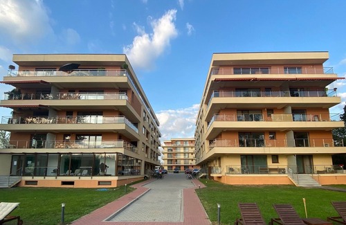Luxury apartment with generous balcony overlooking Lake Snagov, located in the Club Lac Snagov residential complex. Enjoy reading a book on the comfortable lounge chair by the large window. Have a relaxing moment by the lake, swim in the heated pool or go on a hike through the Snagov forest. Children will enjoy the specially designed playground. Parking is free and has 24h security.