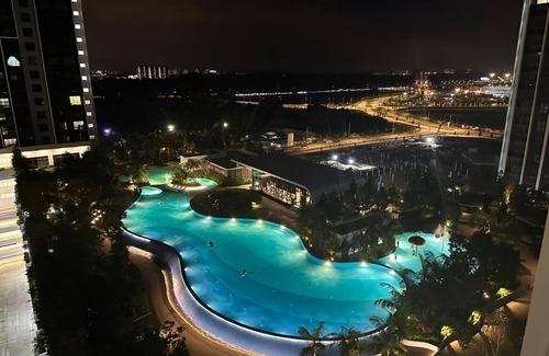 This 3-bedroom apartment in Bandar Gamuda Cove is perfect for your escape. With 2 queen beds, 3 futons, and 1 super single bed, this lovely space can accommodate all your guests comfortably. Enjoy the convenience of amenities like an iron, fitness room, hair dryer, AC, and high speed WiFi. The 2 bathrooms are equipped with a shower, bidet, and hair dryer for your convenience. A great place to call homebase while you're away, we hope you enjoy your stay.